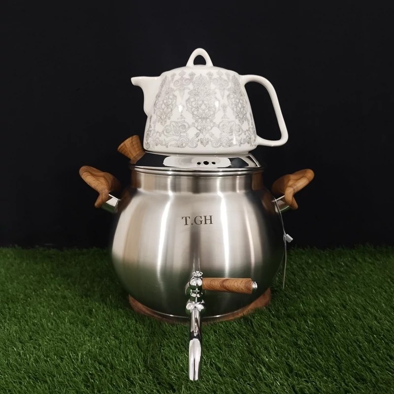 کتری قوری قیطاسی 5.5 لیتری مدل 7065 دسته چوب ماتناموجود