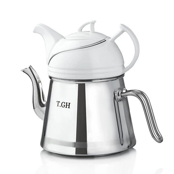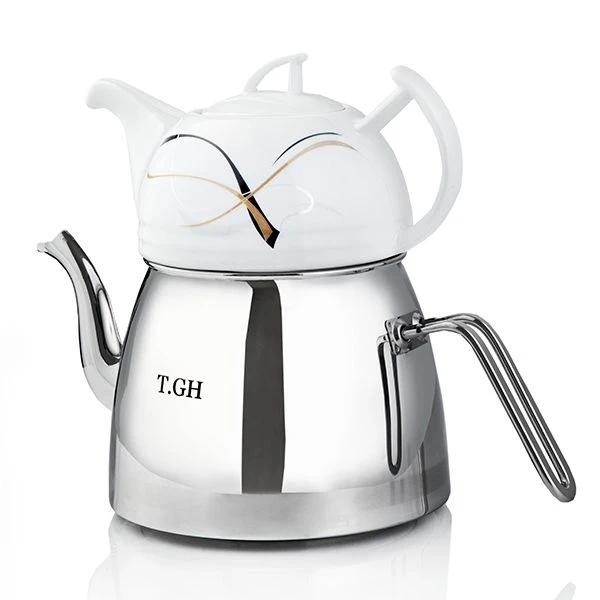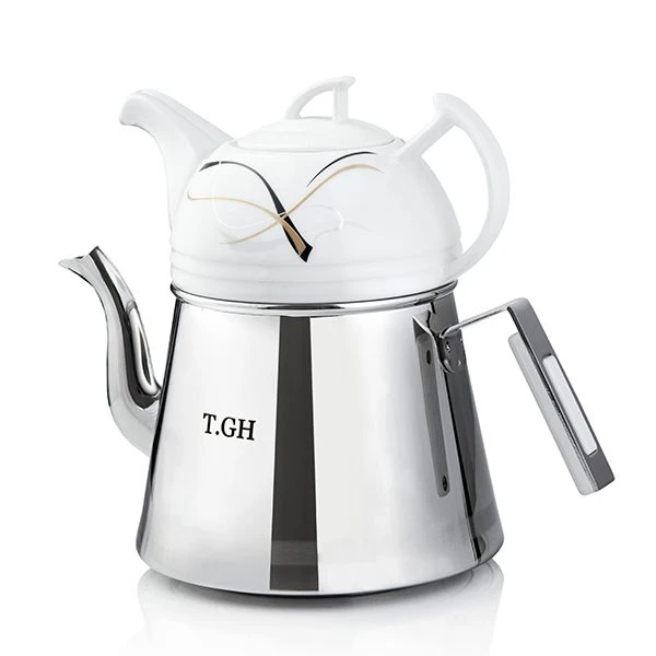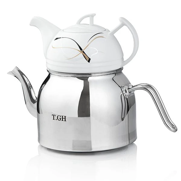 کتری قوری لوله دار قیطاسی 2.5 لیتری مدل 30800 براق کف چدن